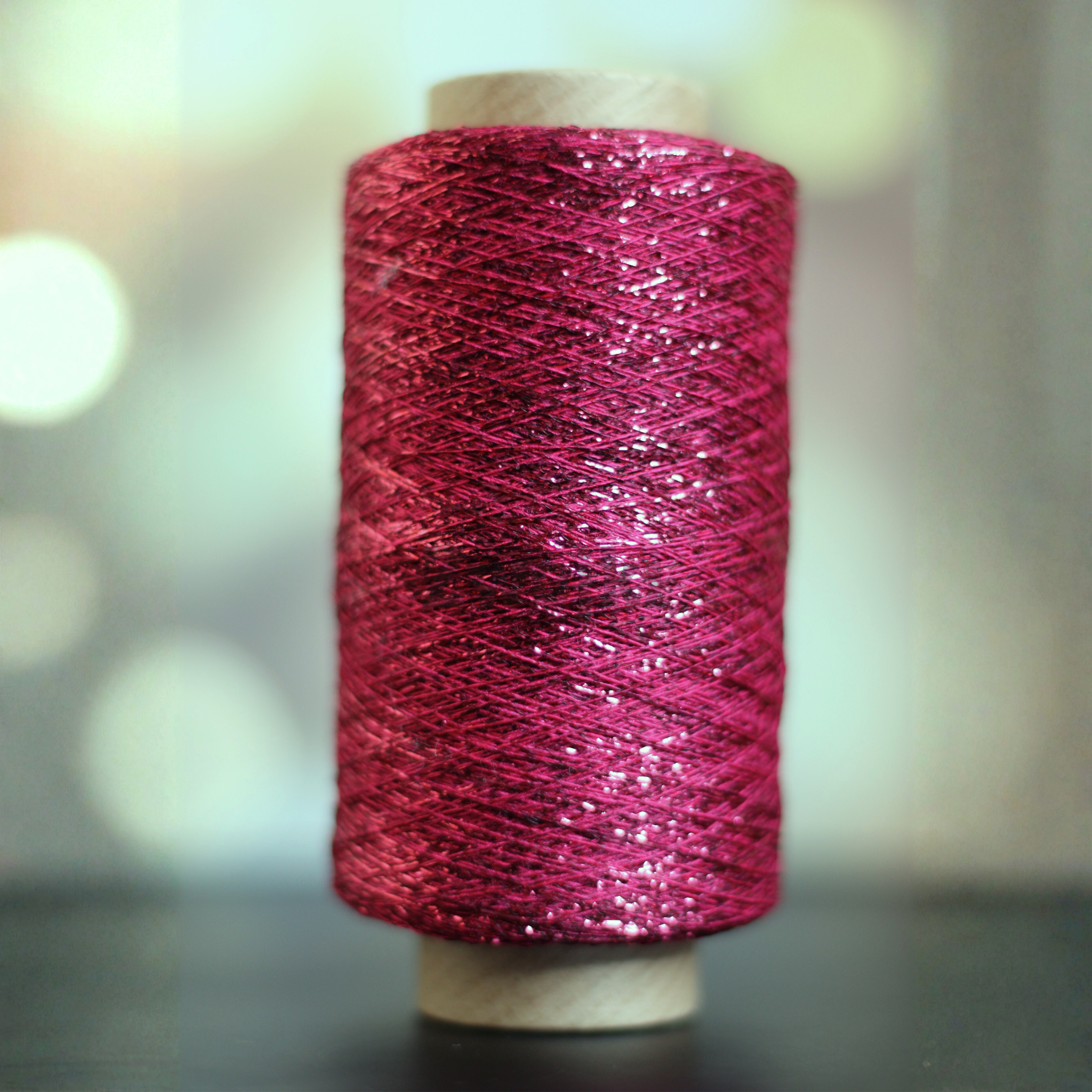 Błyszcząca, metalizowana nić wiskozowa by Zwojki, dostępna na szpulkach.