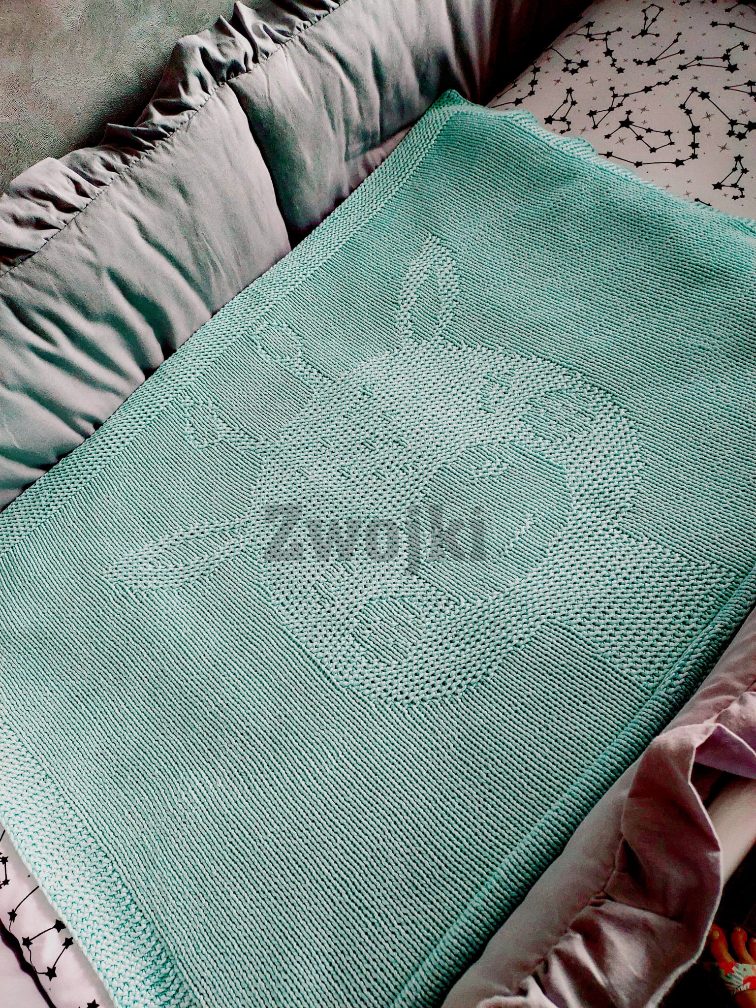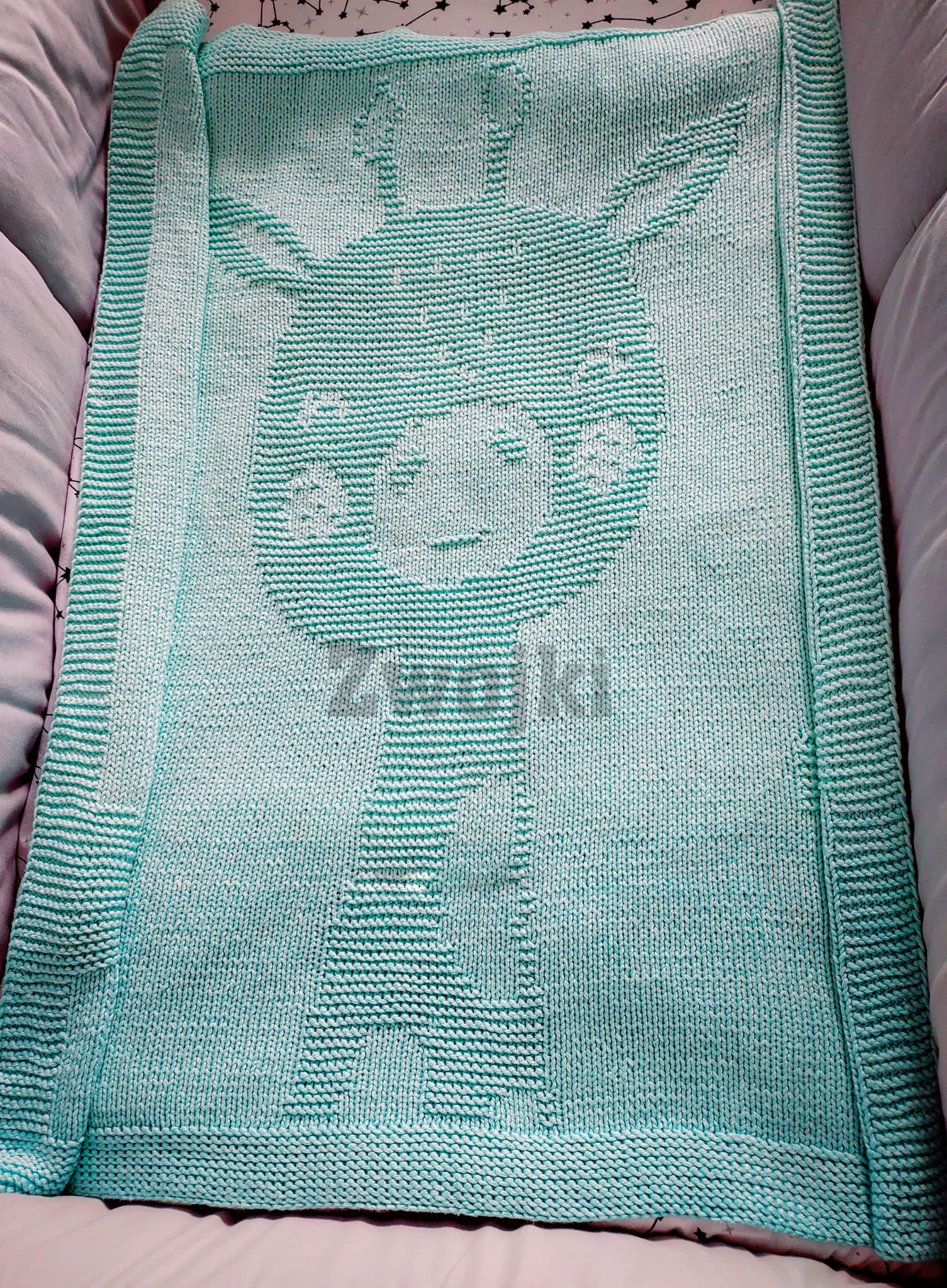 Uwaga! Otrzymujesz wzór, na podstawie którego samodzielnie możesz wykonać koc na drutach, a nie gotowy produkt!