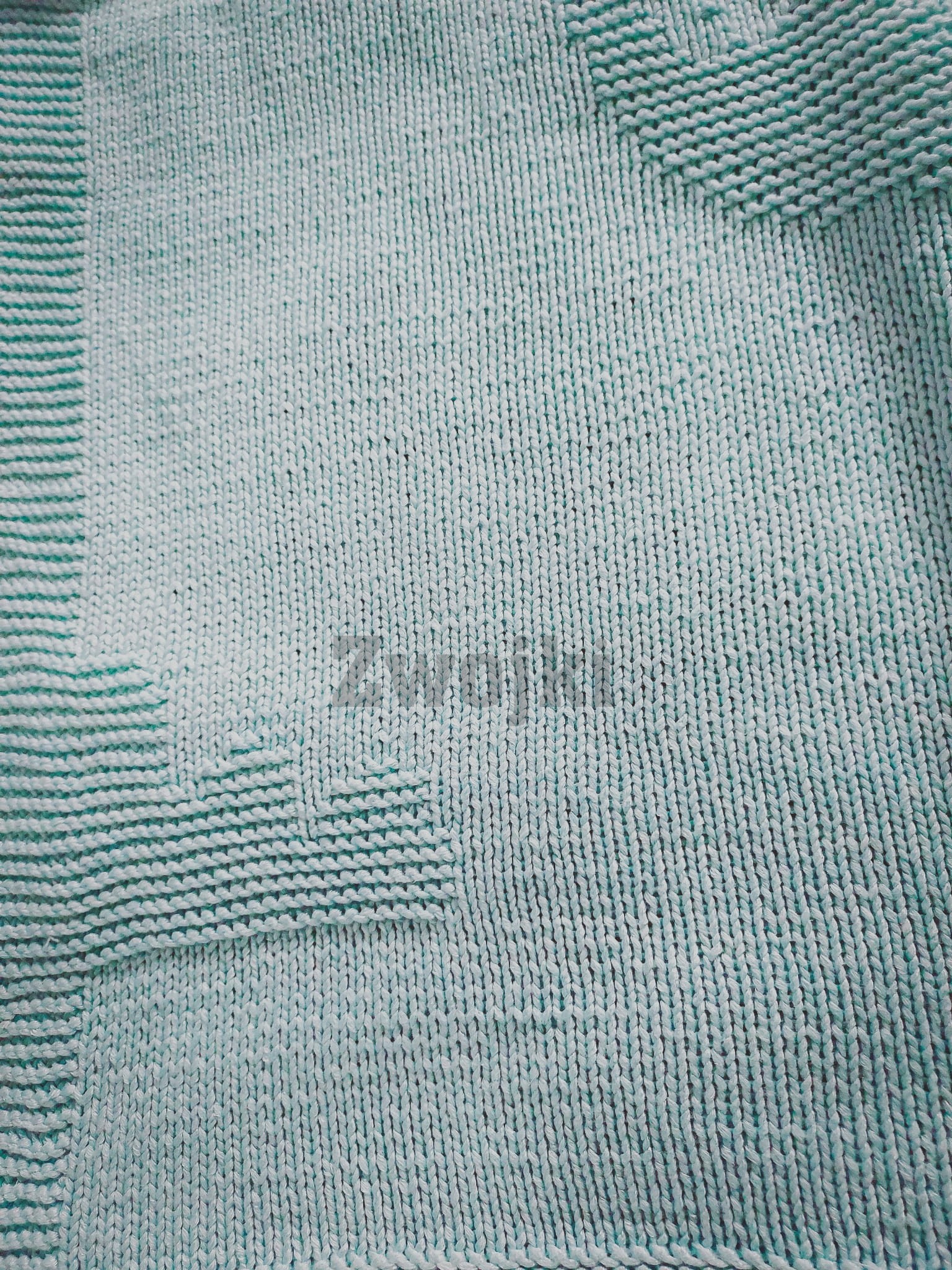 Koc ze zdjęcia został wykonany z włóczki o składzie bambus/akry, 540m, druty 5mm. Wymiary koca po blokowaniu to około 86 cm wysokości i 80cm szerokości.