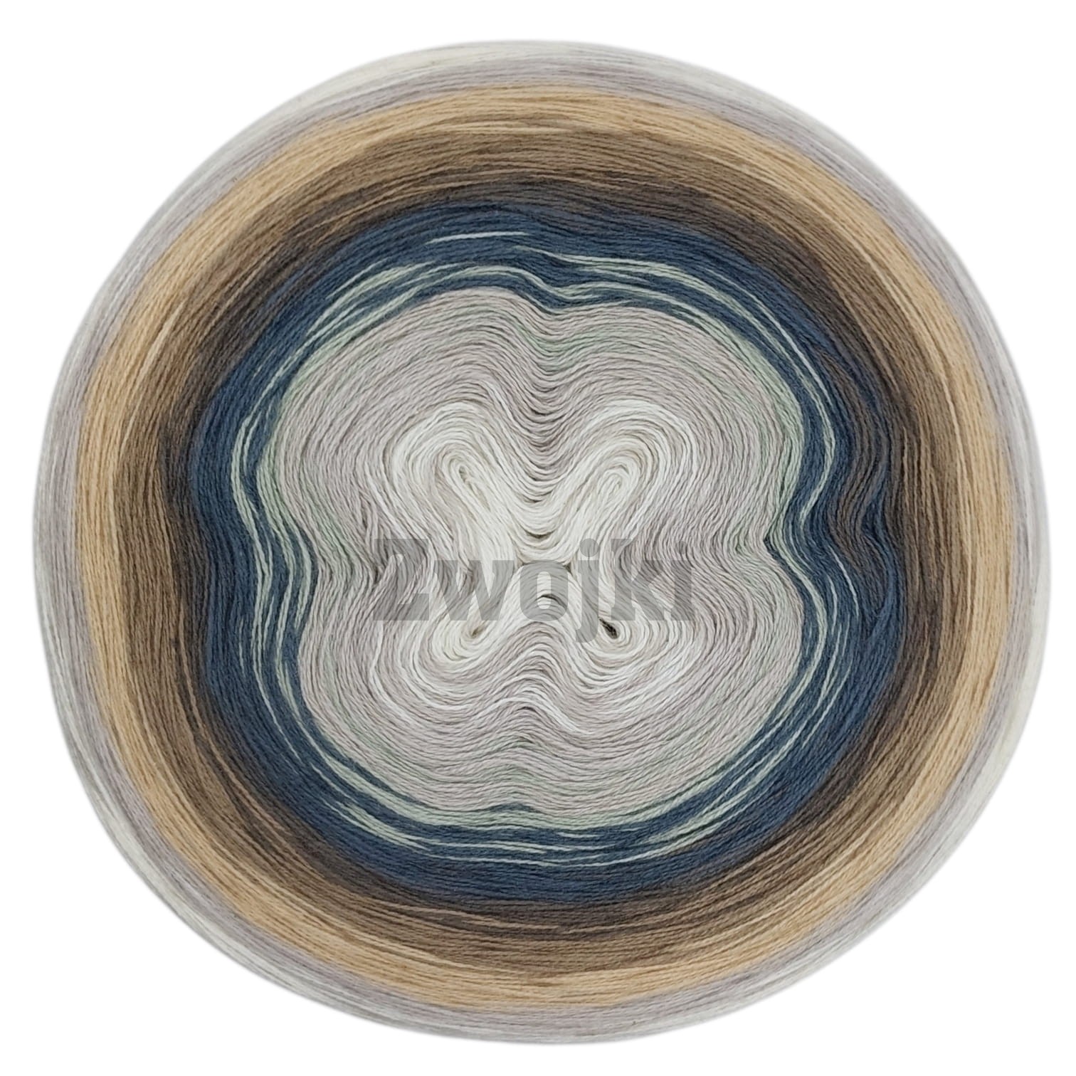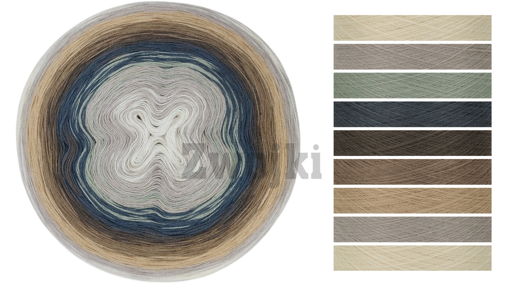 Piękny gradient kolorów nawijany jest ręcznie z 3 lub 4 nitek - zależnie od podjętego wyboru.