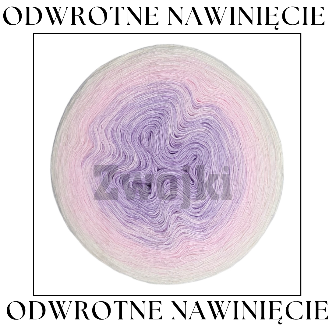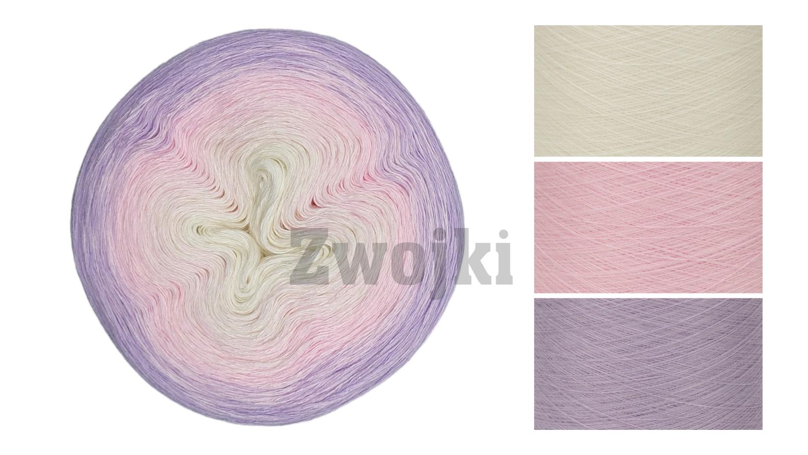 Piękny gradient kolorów nawijany jest ręcznie z 3 lub 4 nitek - zależnie od podjętego wyboru. Zwojki posiadają możliwość wybrania rodzaju nawinięcia (Less oraz standardowe przejścia kolorów) oraz wybrania koloru, który znajdzie się w środku motka.