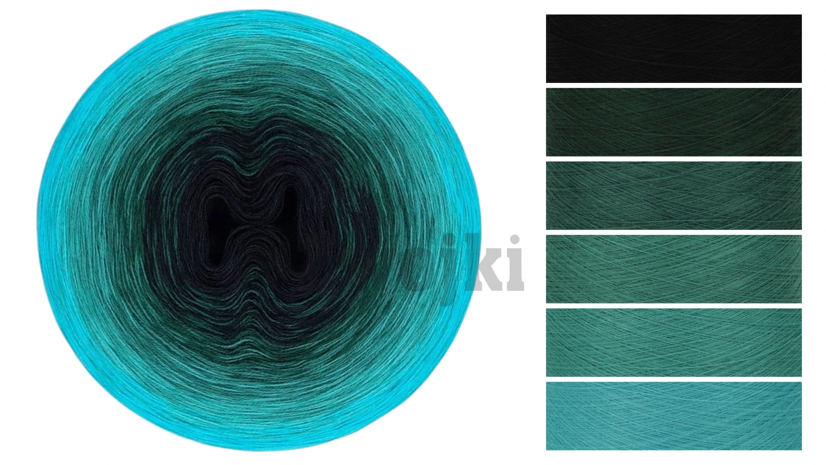 Piękny gradient kolorów nawijany jest ręcznie z 3 lub 4 nitek - zależnie od podjętego wyboru. Zwojki posiadają możliwość wybrania rodzaju nawinięcia (Less oraz standardowe przejścia kolorów) oraz wybrania koloru, który znajdzie się w środku motka.