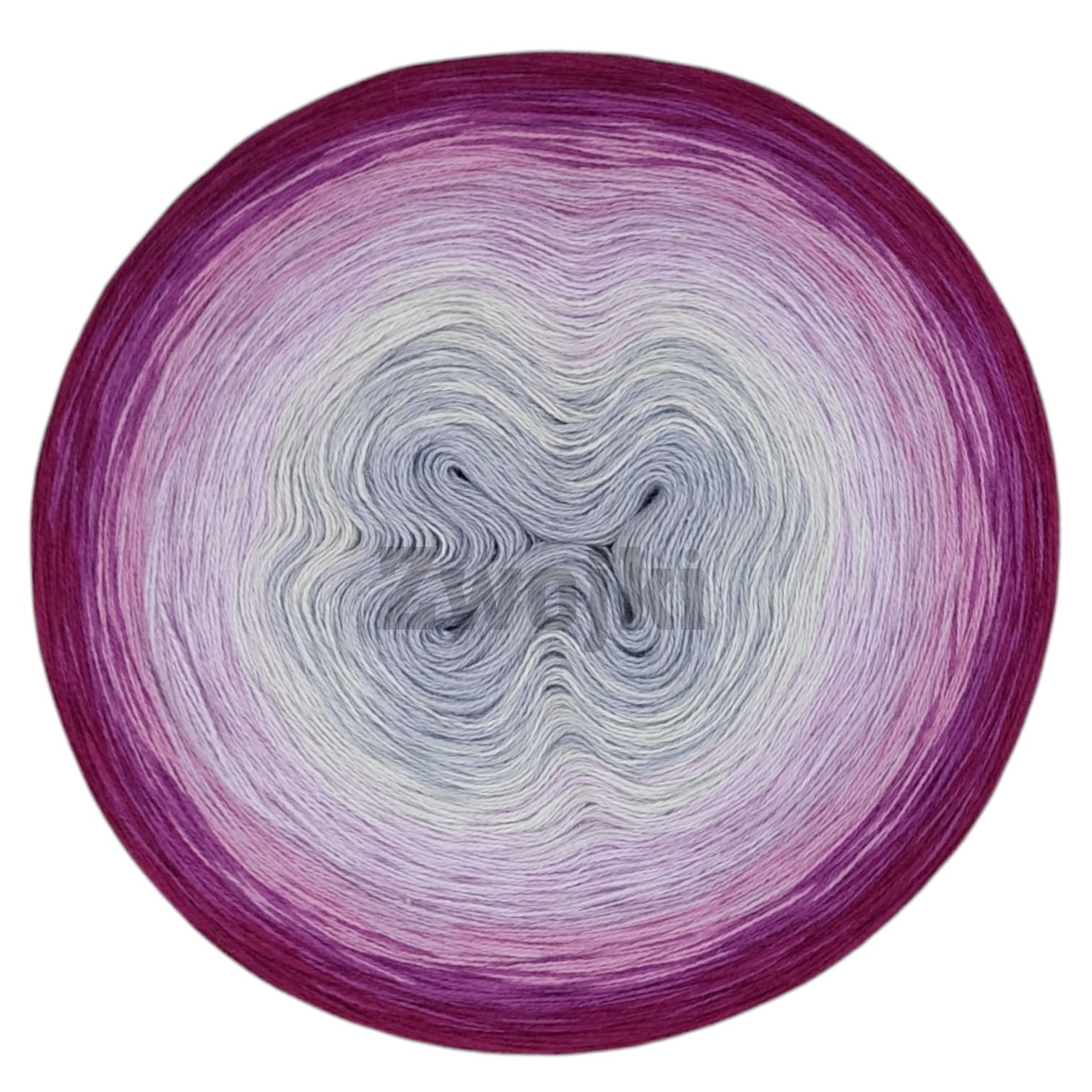 Piękny gradient kolorów nawijany jest ręcznie z 3 lub 4 nitek - zależnie od podjętego wyboru. Zwojki posiadają możliwość wybrania rodzaju nawinięcia (Less oraz standardowe przejścia kolorów) oraz wybrania koloru, który znajdzie się w środku motka.