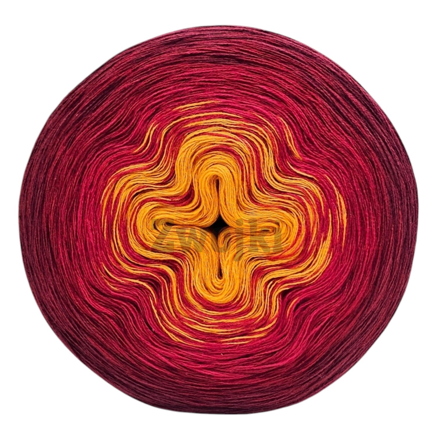 Piękny gradient kolorów nawijany jest ręcznie z 3 lub 4 nitek - zależnie od podjętego wyboru. Zwojki posiadają możliwość wybrania rodzaju nawinięcia (Less oraz standardowe przejścia kolorów) oraz wybrania koloru, który znajdzie się w środku motka.