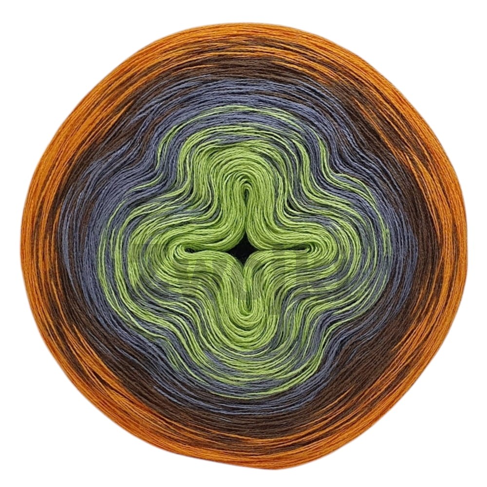 Piękny gradient kolorów nawijany jest ręcznie z 3 lub 4 nitek - zależnie od podjętego wyboru. Zwojki posiadają możliwość wybrania rodzaju nawinięcia (Less oraz standardowe przejścia kolorów) oraz wybrania koloru, który znajdzie się w środku motka.