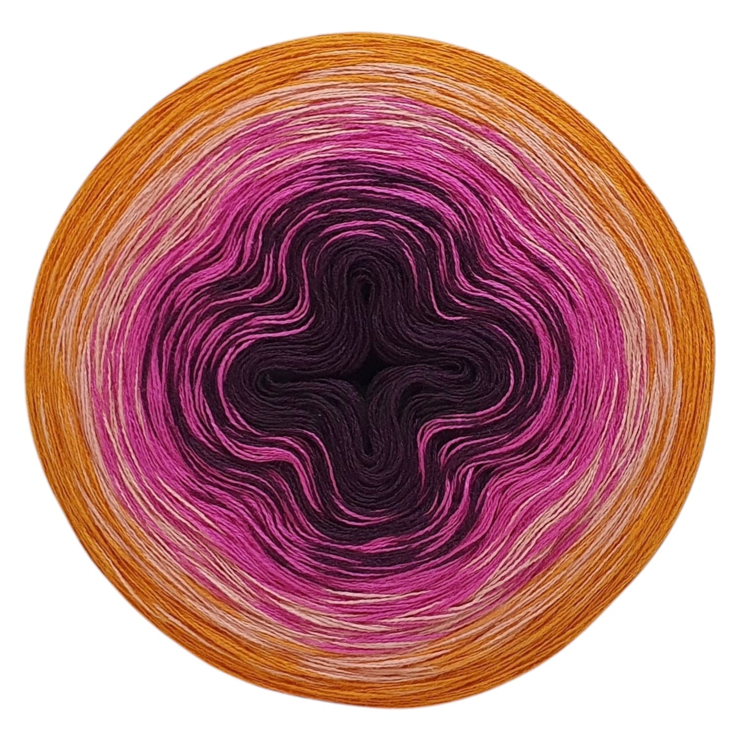 Piękny gradient kolorów nawijany jest ręcznie z 3 lub 4 nitek - zależnie od podjętego wyboru. Zwojki posiadają możliwość wybrania rodzaju nawinięcia (Less oraz standardowe przejścia kolorów) oraz wybrania koloru, który znajdzie się w środku motka.