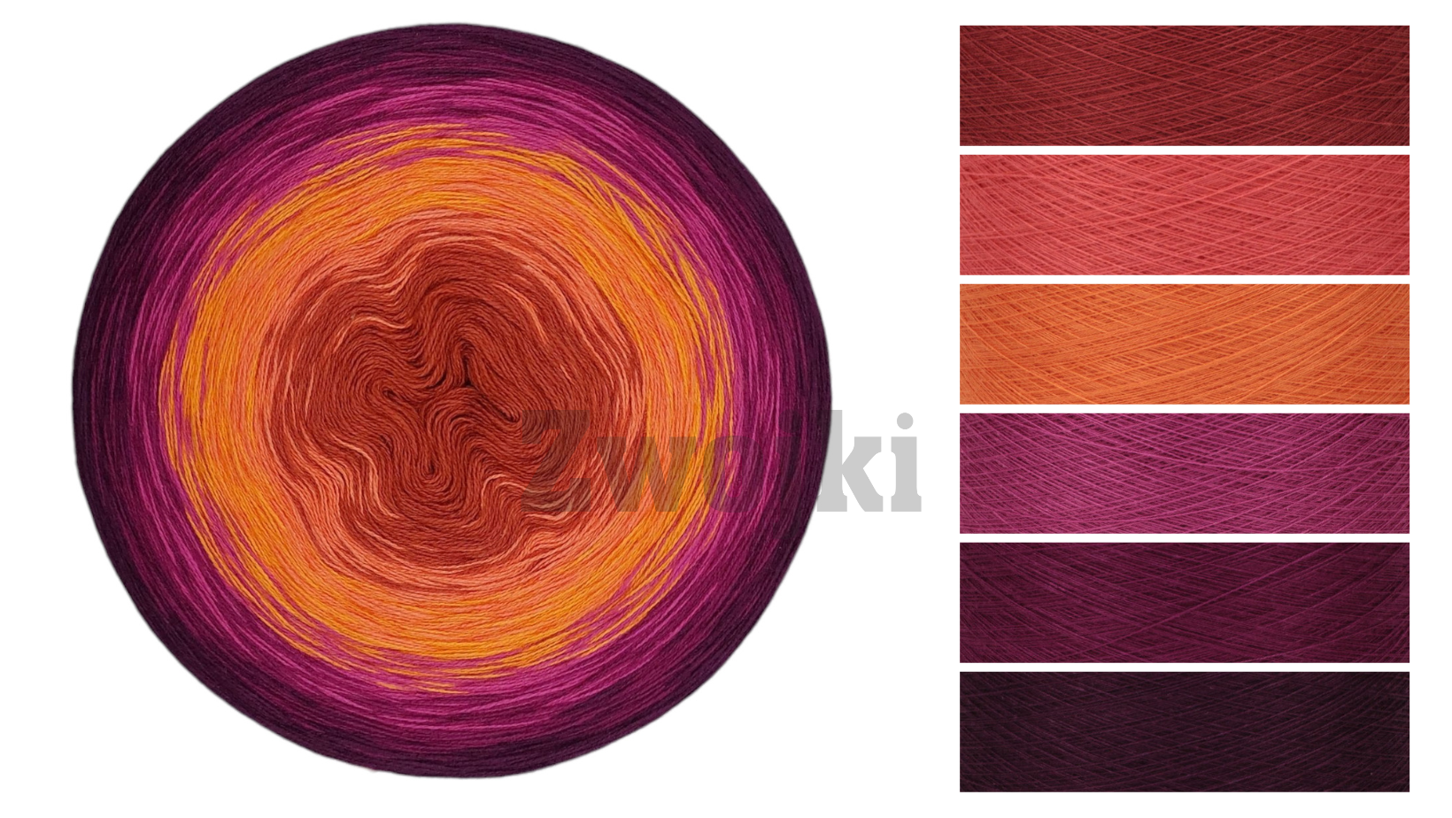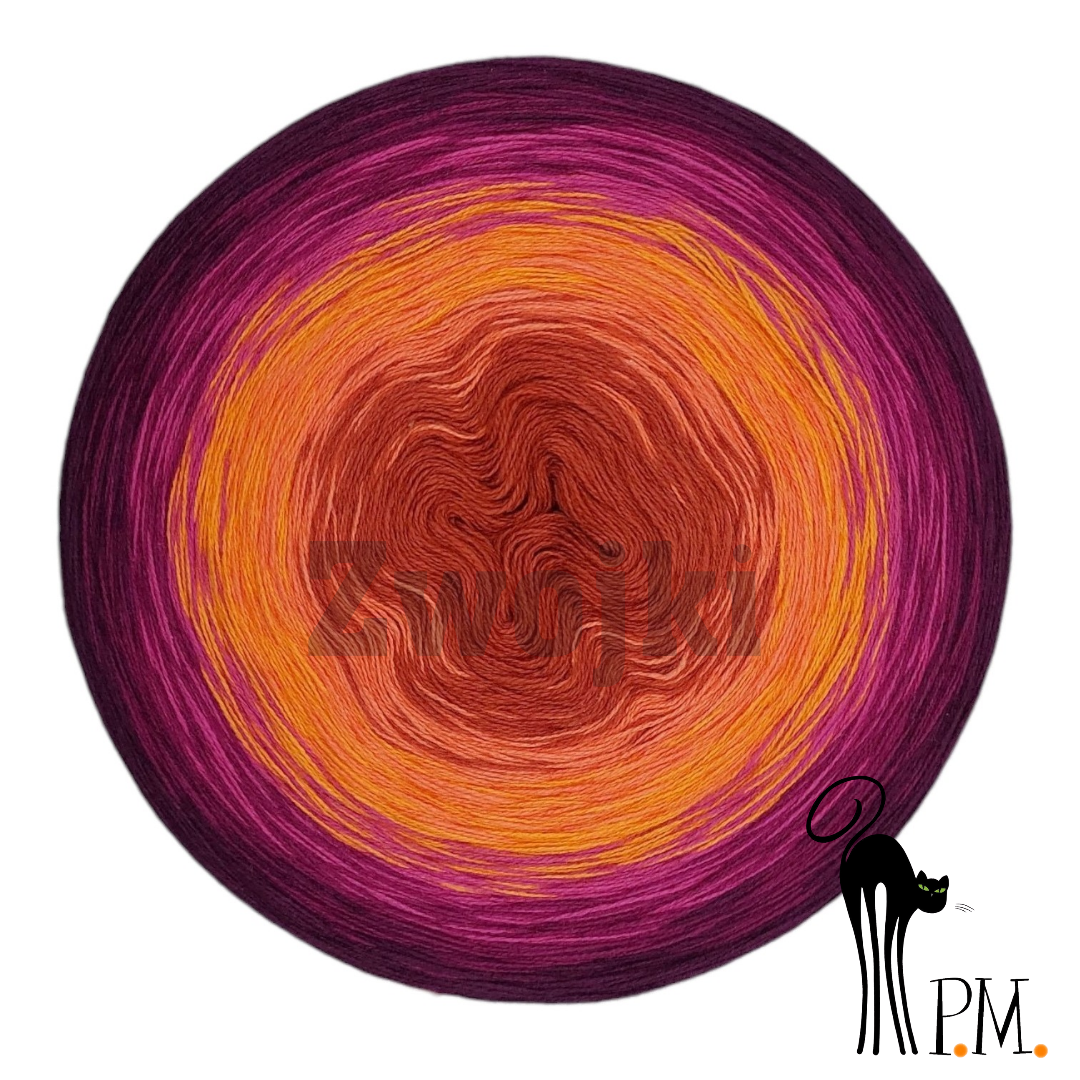 Piękny gradient kolorów nawijany jest ręcznie z 3 lub 4 nitek - zależnie od podjętego wyboru. Zwojki posiadają możliwość wybrania rodzaju nawinięcia (Less oraz standardowe przejścia kolorów) oraz wybrania koloru, który znajdzie się w środku motka.