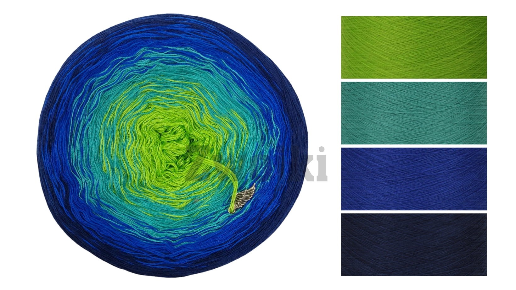 Piękny gradient kolorów nawijany jest ręcznie z 3 lub 4 nitek - zależnie od podjętego wyboru. Zwojki posiadają możliwość wybrania rodzaju nawinięcia (Less oraz standardowe przejścia kolorów) oraz wybrania koloru, który znajdzie się w środku motka.