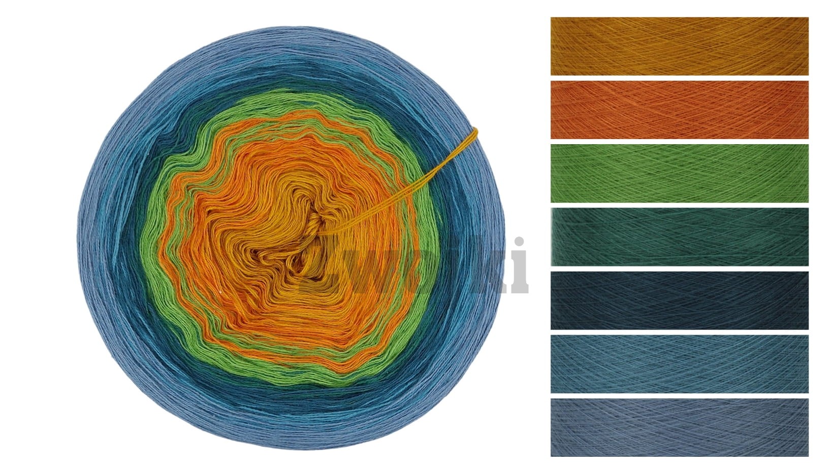 Piękny gradient kolorów nawijany jest ręcznie z 3 lub 4 nitek - zależnie od podjętego wyboru. Zwojki posiadają możliwość wybrania rodzaju nawinięcia (Less oraz standardowe przejścia kolorów) oraz wybrania koloru, który znajdzie się w środku motka.