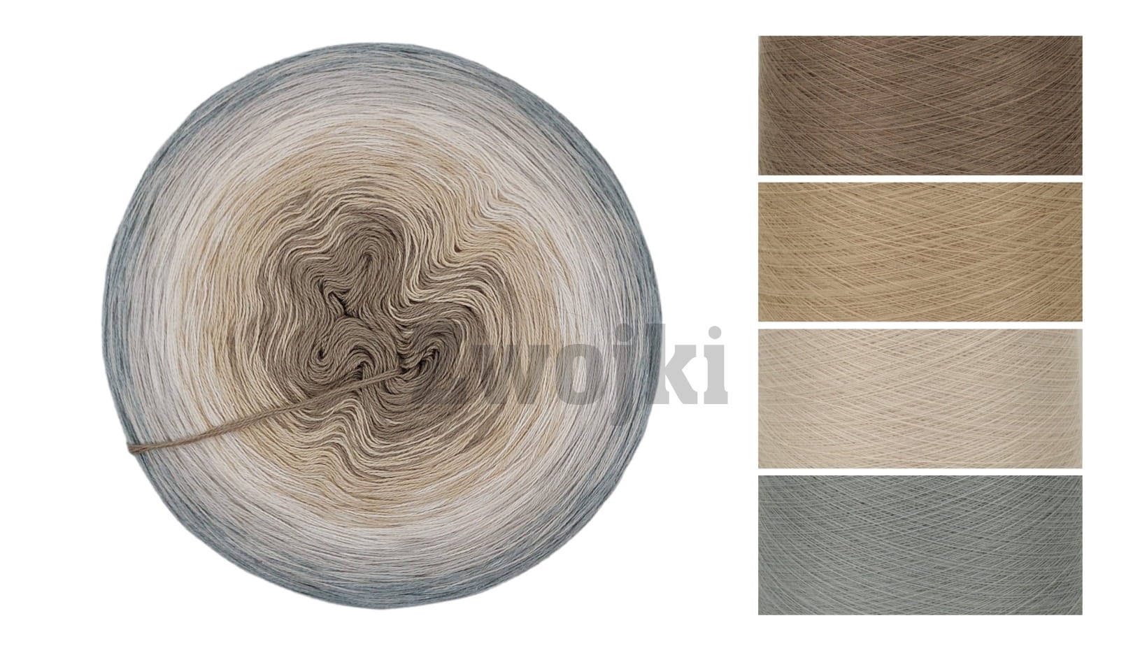 Piękny gradient kolorów nawijany jest ręcznie z 3 lub 4 nitek - zależnie od podjętego wyboru. Zwojki posiadają możliwość wybrania rodzaju nawinięcia (Less oraz standardowe przejścia kolorów) oraz wybrania koloru, który znajdzie się w środku motka.