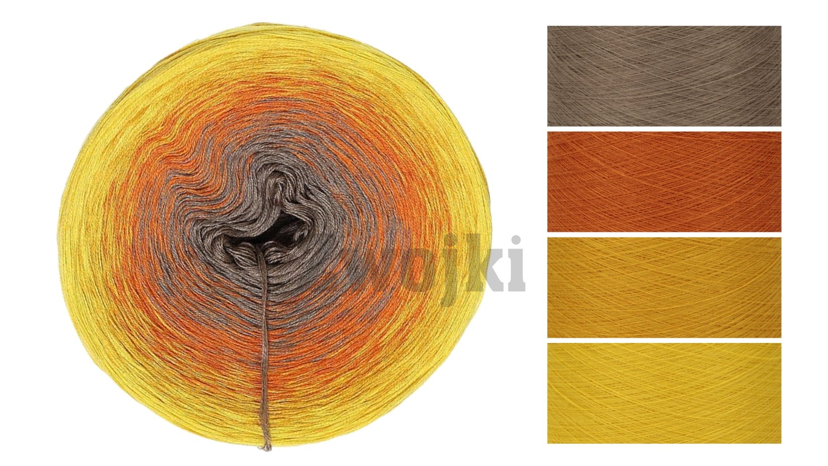Kolory w motku: glina/koniak/kurkuma/słoneczko