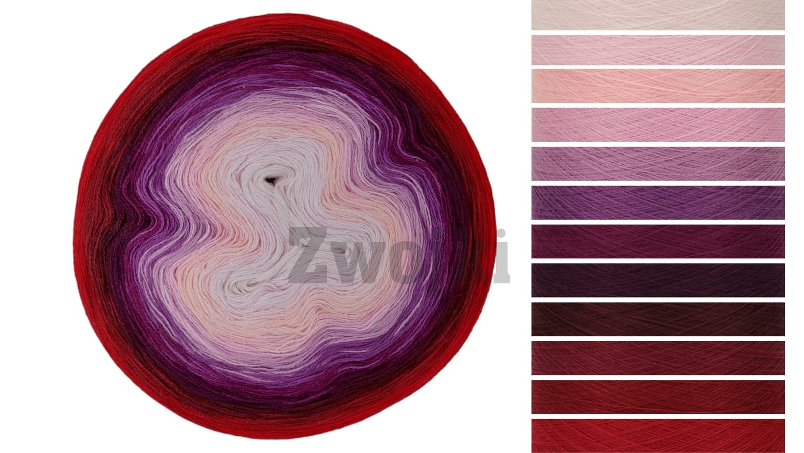 Piękny gradient kolorów nawijany jest ręcznie z 12 nitek - zależnie od podjętego wyboru. Zwojki posiadają możliwość wybrania rodzaju nawinięcia (Less oraz standardowe przejścia kolorów) oraz wybrania koloru, który znajdzie się w środku motka.