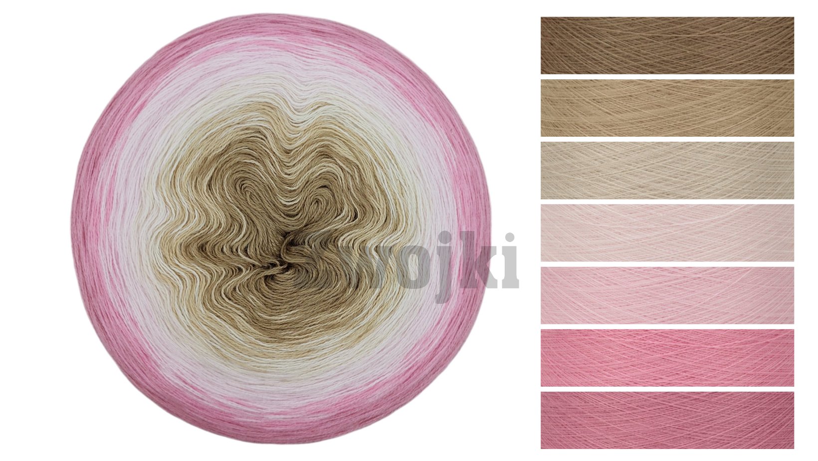 Kolory w motku: ciemny beż/jasny beż/pudrowy beż/pastelowy róż/jasny róż/róż/malinowy róż