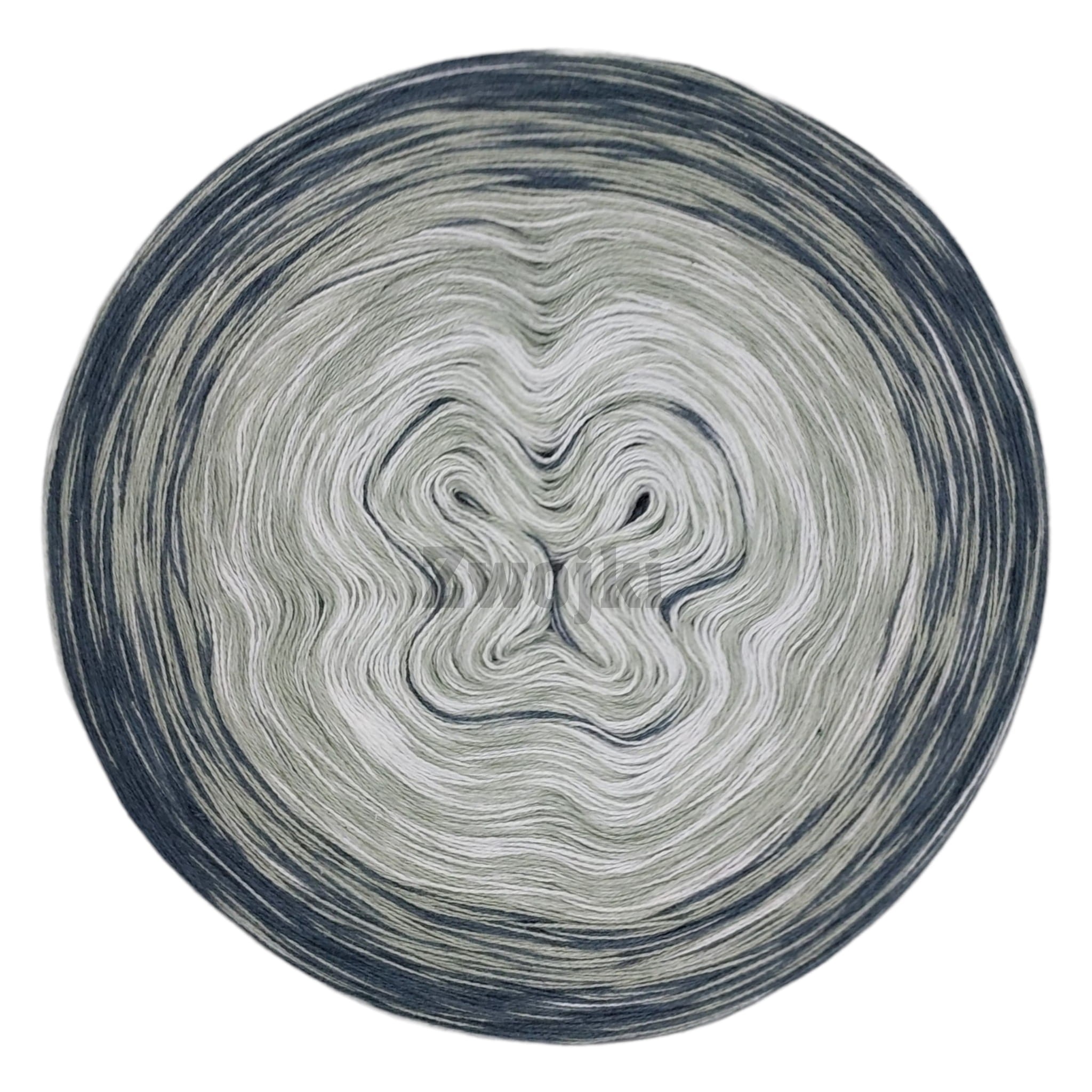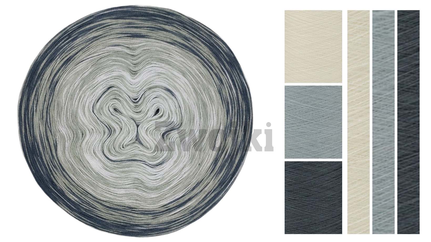 Piękny gradient kolorów nawijany jest ręcznie z 6 nitek - 3 nitki na których tworzymy efekt ombre w nawinięciu Full Less oraz 3 nitki, które są pociągnięte przez cały motek tworząc delikatny efekt melanżu.
