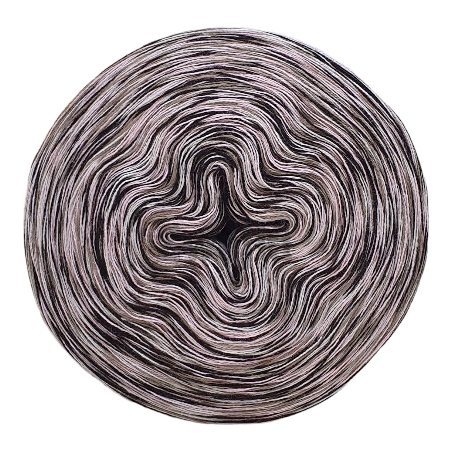 Nawijany ręcznie, składający się z 4 nitek różnego koloru, które nie są skręcone.