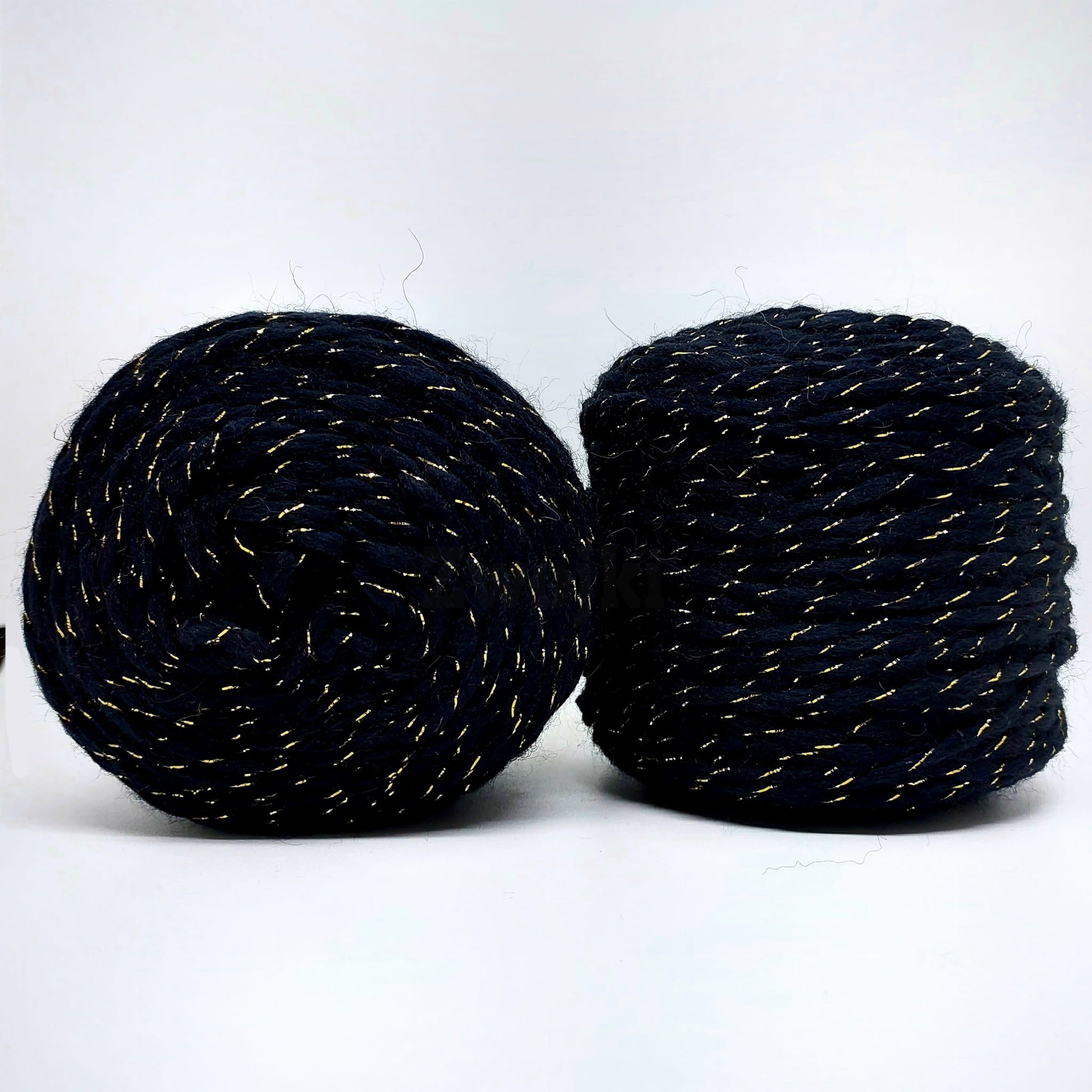 Włókna są delikatnie skręcone, oplecione jednokolorowym lurexem.